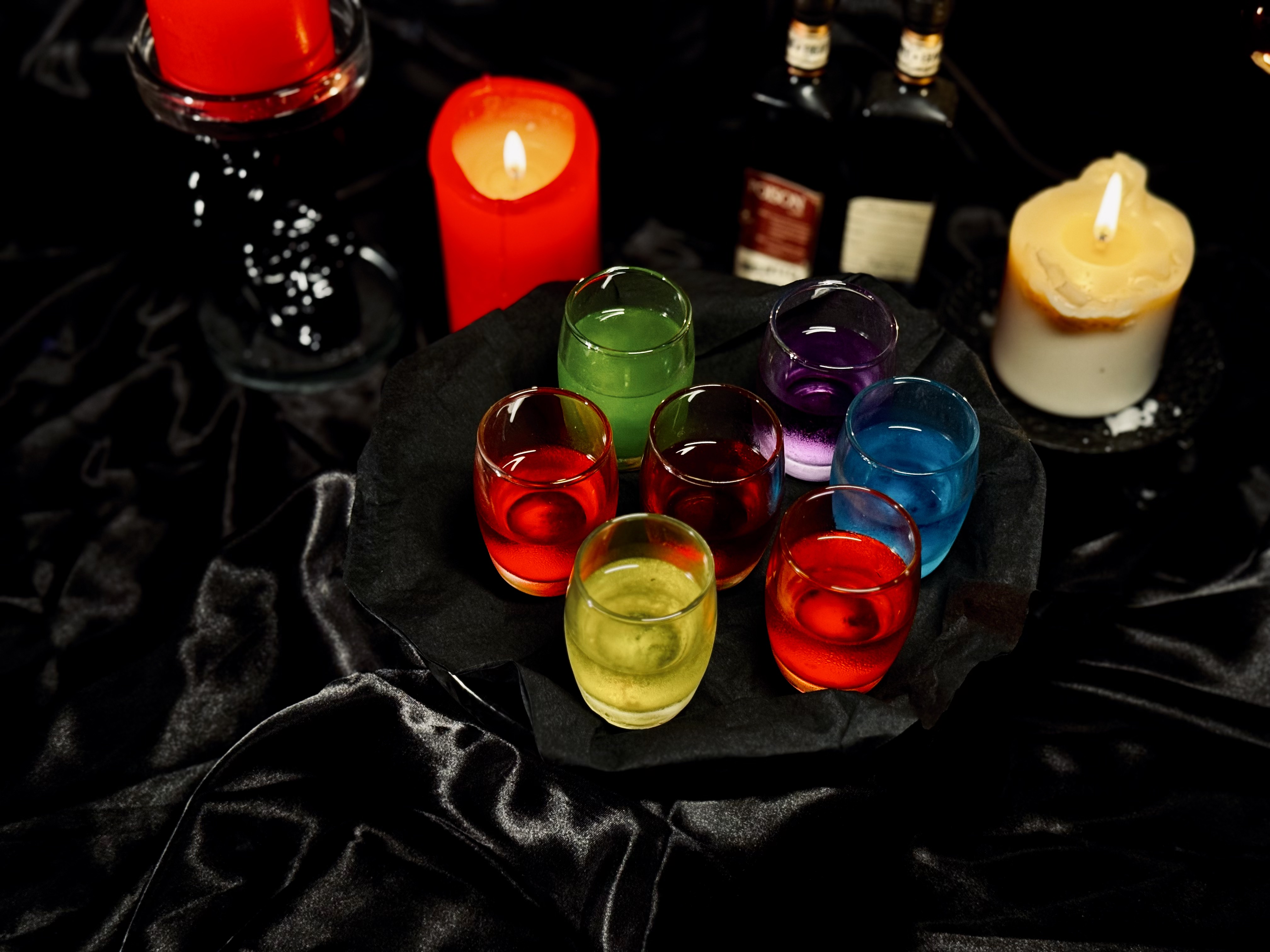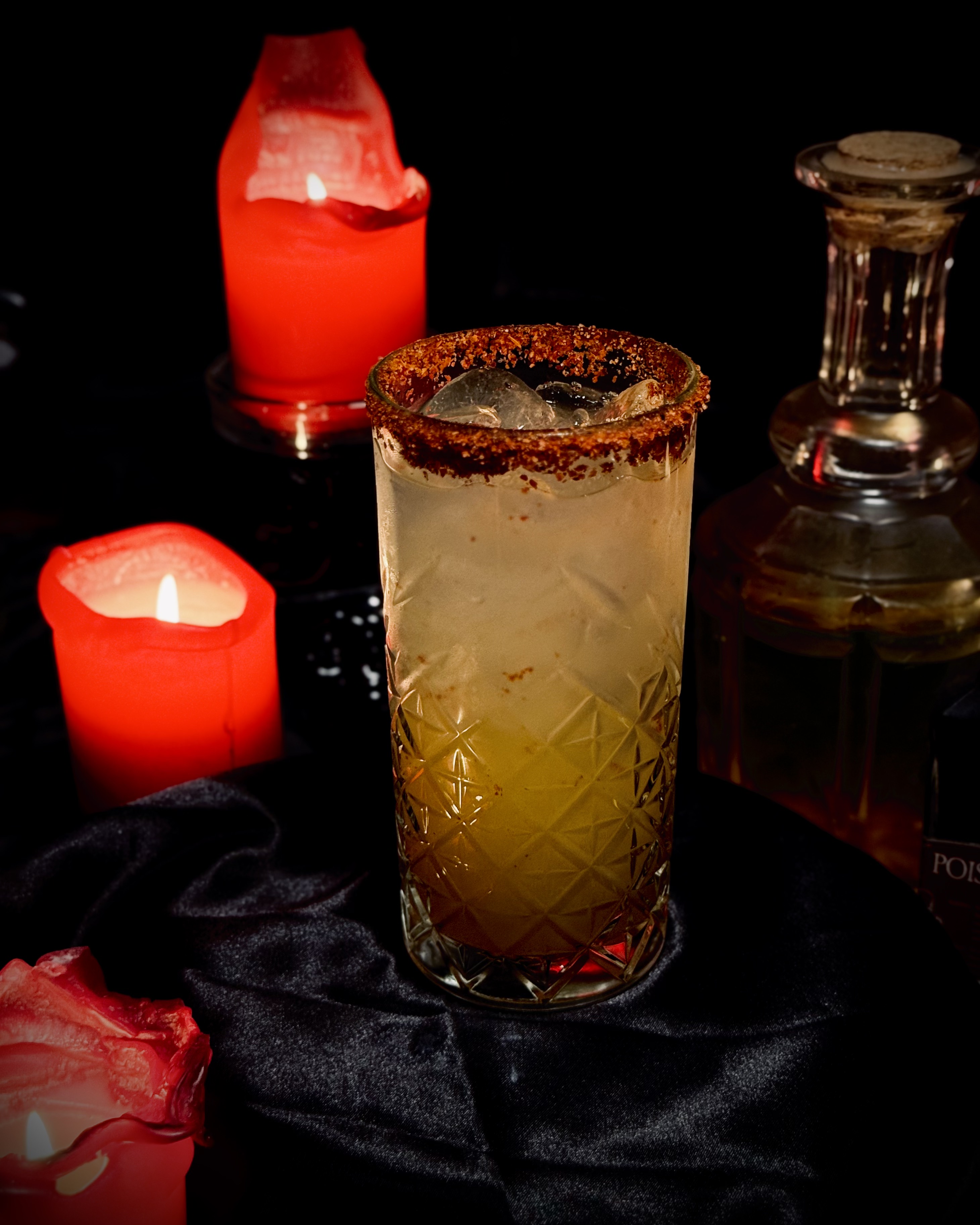 Step into the booth: pisco, peach schnapps, triple sec, grenadine, and lemonade. Sweet enough to loosen tongues, strong enough to drag out your sins. Beware the bloody lychee-cherry eye staring back at you — one look, and every secret you’ve buried will claw its way out.
